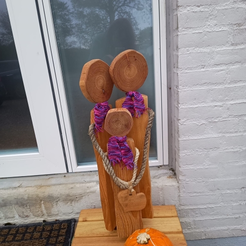 Kæresteparret er fremstillet i robinia og behandlet med klar træbeskyttelse. Parret kan sagtens tåle vejr og vind og kan derfor fint pynte i haven eller ved fordøren.