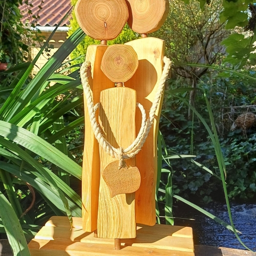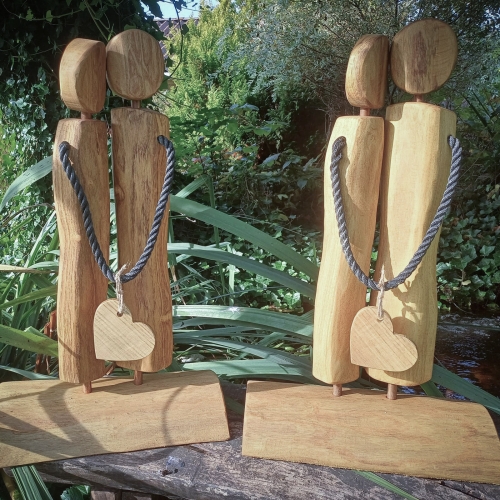 Kæresteparret er fremstillet i robinia og behandlet med klar træbeskyttelse. Parret kan sagtens tåle vejr og vind og kan derfor fint pynte i haven eller ved fordøren.